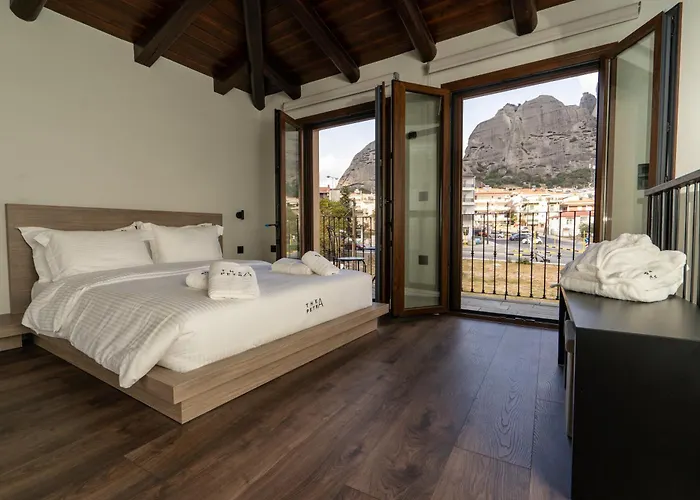 Z Apartament Thea Petra Kalambaka roztacza się widok na ogród, a goście mają do dyspozycji jacuzzi i saunę. Klasztor Świętej Trójcy znajduje się w odległości 25 min spacerem, a Klasztor Świętego Mikołaja Odpoczywającego w odległości 2 km.